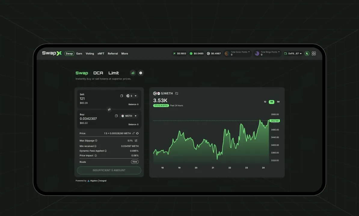 SwapX partnered with our team to build a ve(3,3) DEX on Sonic, with AMM and CLMM integrated with ICHI for automated liquidity, a Voting Escrow and rewards system, and over 30 interconnected smart contracts tied together with backend and frontend.